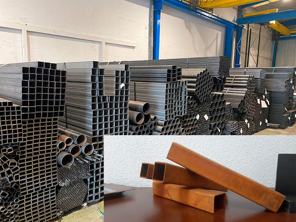 Tubo Corten, partindo de bobina, com o objetivo de oferecer uma solução integral para o processo construtivo de qualquer edificação, utilizando a mesma composição da chapa Corten. Isso evita a contaminação do aço que não atende aos requisitos da chapa com a qual construímos essas estruturas. Qualidades: S355J2WP.